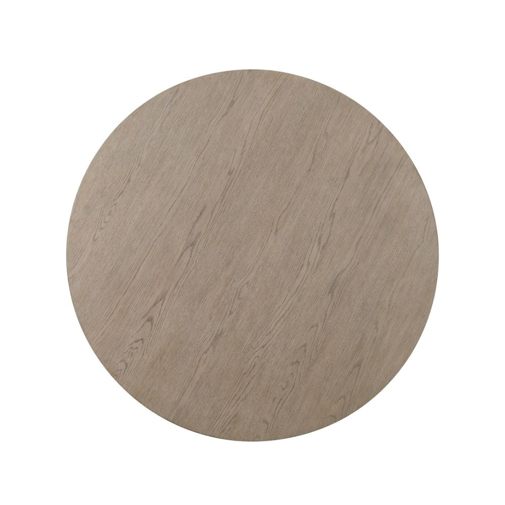 La table de salle à manger ronde Accord présente un design raffiné, réalisé en bois massif avec un placage à grain naturel dans une subtile teinte grise. Sa forme ronde favorise les repas en petit comité et en fait une pièce maîtresse élégante pour tout espace repas.