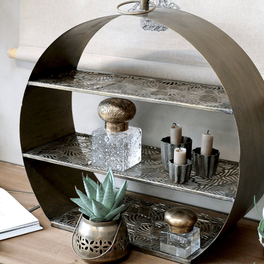 Étagère Arles en laiton antique à motifs