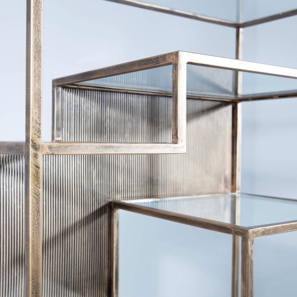 L'étagère Comino de Flamant apporte une touche de modernité et de luxe à tout espace. Sa structure élégante en métal et en verre, d'une raffinée couleur laiton, allie fonctionnalité et style. Idéale pour mettre en valeur vos objets préférés avec élégance et goût.