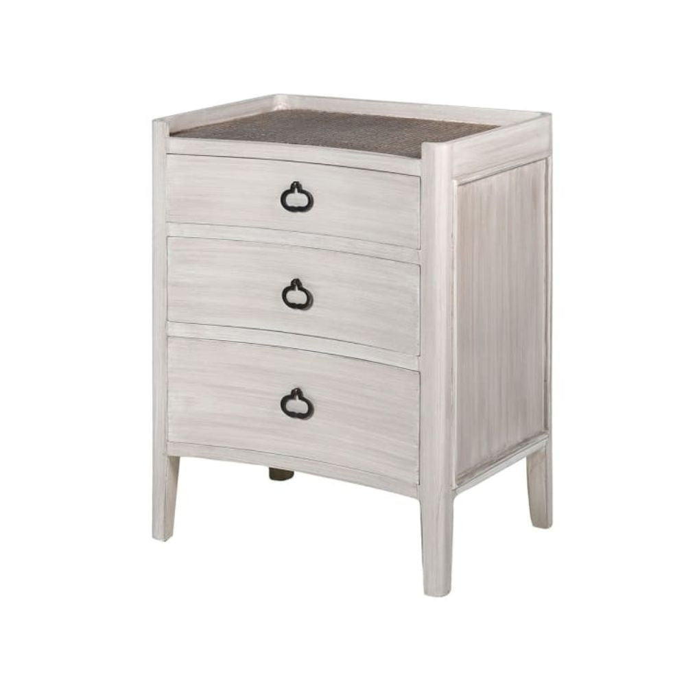 Sublimez votre chambre avec la table de chevet Norfried à 3 tiroirs. Réinterprétation moderne du style nordique intemporel de Gustavien, elle arbore une élégante finition blanchie à la chaux et en rotin. Son design épuré et contemporain apporte une touche d'élégance à toute pièce. Disponible dès maintenant.