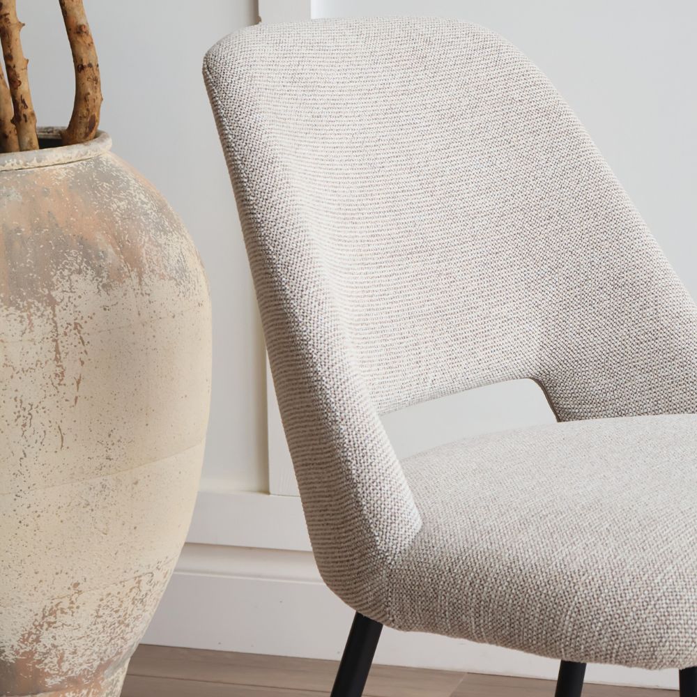 La chaise de salle à manger Oska allie design fonctionnel et élégance contemporaine, s'harmonisant avec tous les styles d'intérieur. Ses pieds robustes en métal à la finition naturelle lui confèrent une touche industrielle subtile, tandis que son assise ergonomique assure un confort et un soutien durables.