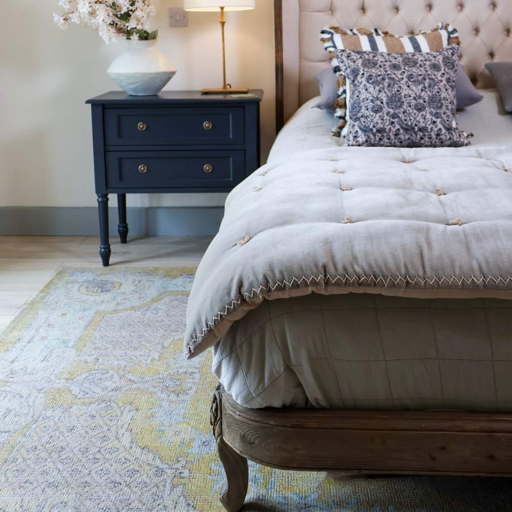 - détail de la tête de lit en lin