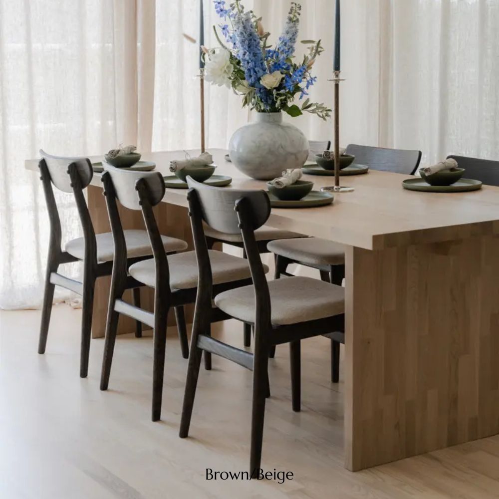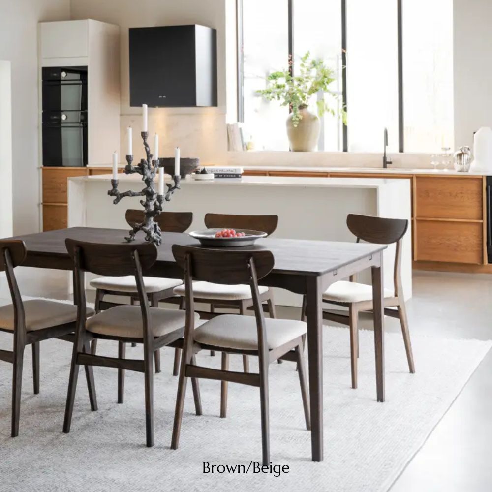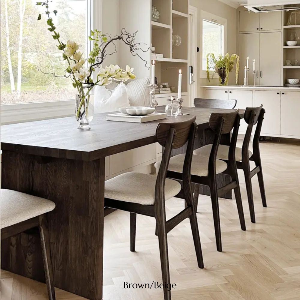 Découvrez la chaise de salle à manger Rixo, un parfait équilibre entre intemporalité et modernité. Fabriquée en chêne massif et revêtue d'un tissu beige moelleux, cette chaise incarne le luxe. Sa structure et son dossier en chêne massif offrent un confort et un style durables, ce qui en fait la pièce idéale pour votre salon.