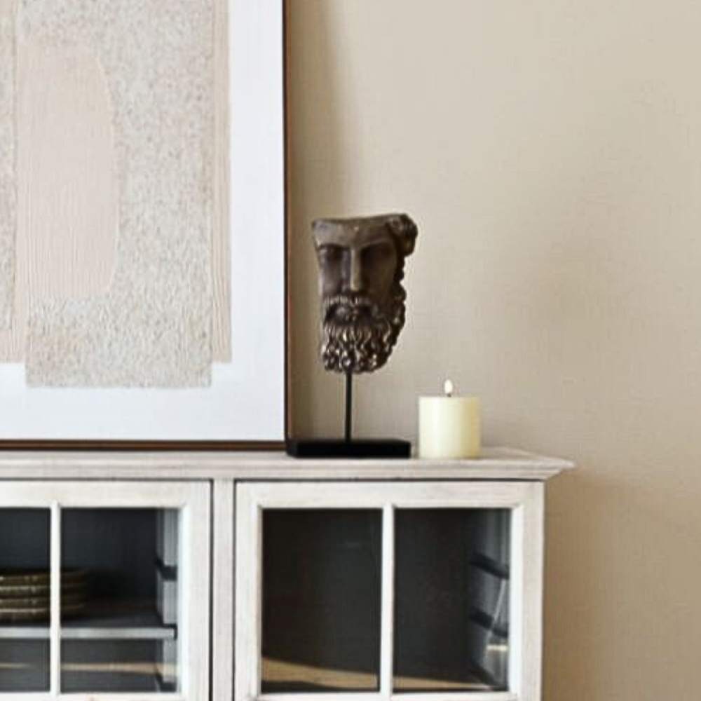 Cette exquise sculpture de visage romain sur socle capture la beauté et la grandeur de la Rome antique. Réalisée avec une grande finesse, elle apporte une touche d'élégance à tout espace. Laissez-vous transporter par le raffinement et l'histoire de l'Empire romain grâce à cette pièce luxueuse.