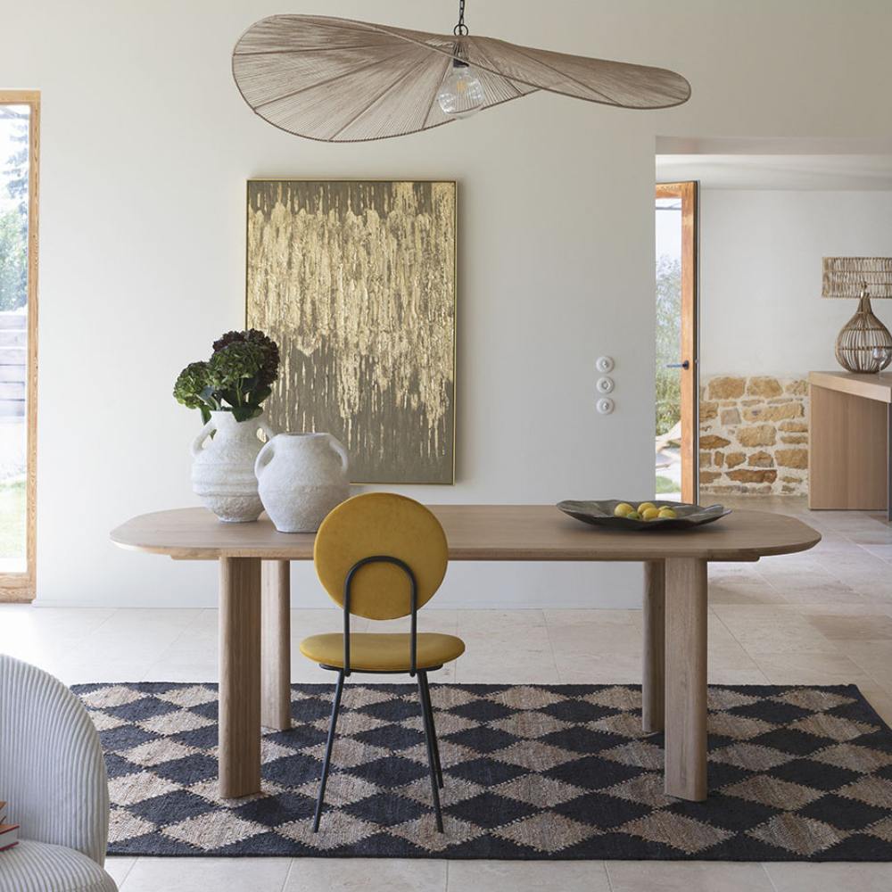 Découvrez la table à manger Sabrina, inspirée du design italien et confectionnée avec des lignes épurées et une finition chêne clair. Son élégant piètement et son bois blond s'harmonisent avec tous les styles d'intérieur, créant un espace idéal pour recevoir et partager des moments précieux en famille ou entre amis. Associez-la aux autres pièces de la collection Sabrina pour un ensemble cohérent. Vous pouvez par exemple la placer sur un tapis en jute et l'entourer de chaises aux tons neutres.