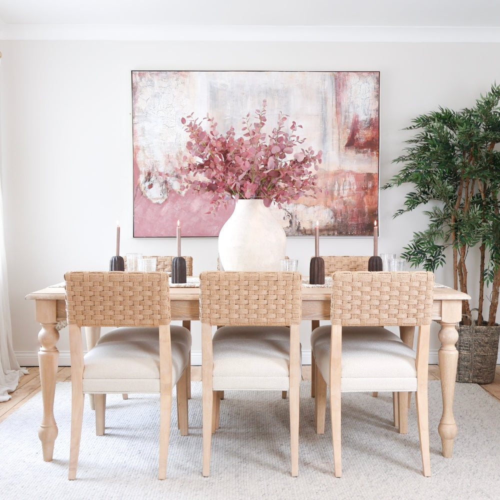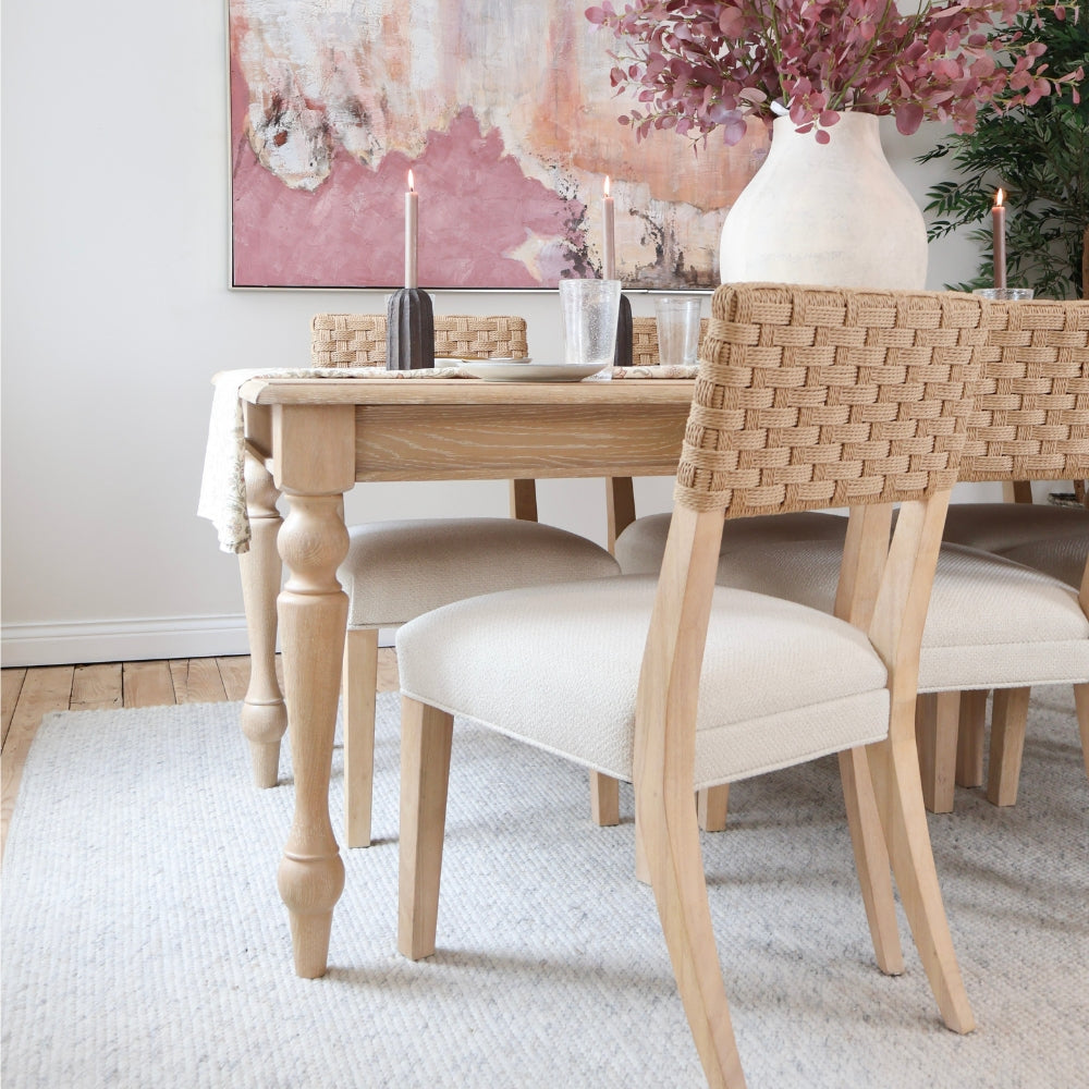 Là où les tons chauds du bois et les textures inspirées du lin rencontrent une forme intemporelle. Façonné avec des détails de grain de bois naturel – les variations de teinte et de motif rendent chaque pièce unique. Le cadre à effet lin est en réalité un bois dur texturé – pratique, durable et d'une élégance discrète.