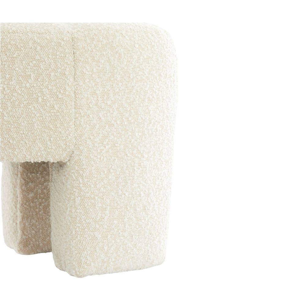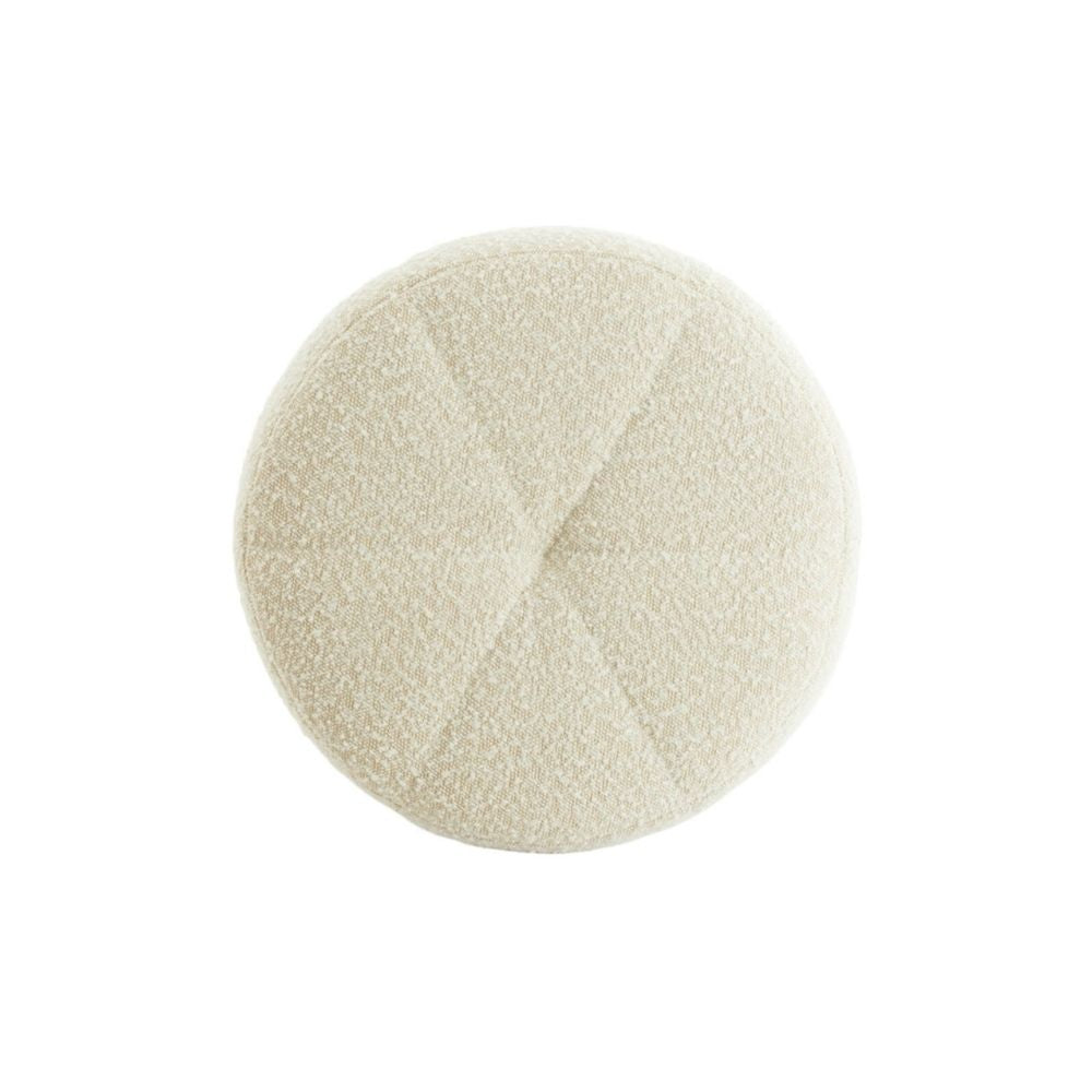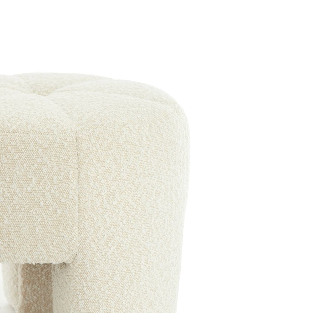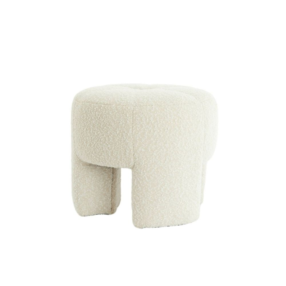 Ce pouf Toemei couleur crème, revêtu d'un tissu bouclé doux et de forme ronde, offre une assise confortable ou un repose-pieds élégant. Ses pieds ajourés originaux apportent une touche design subtile tout en assurant stabilité et protection du sol. Compact et polyvalent, il s'intègre facilement dans tous les espaces de vie pour un usage quotidien.