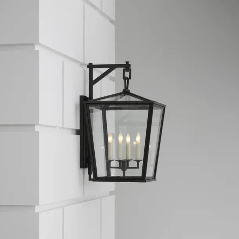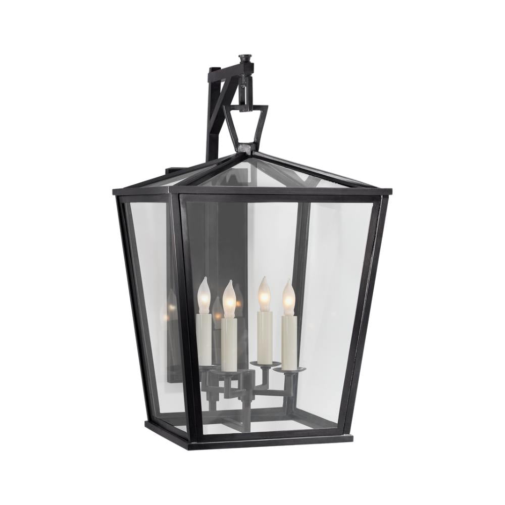La lanterne murale Darlana Medium de Visual Comfort, en bronze, est dotée de panneaux en verre transparent qui illuminent avec élégance votre espace extérieur. Son design classique et son support robuste apportent une touche sophistiquée aux entrées et aux terrasses, alliant un style intemporel à une fabrication durable pour une beauté et une fonctionnalité qui durent.